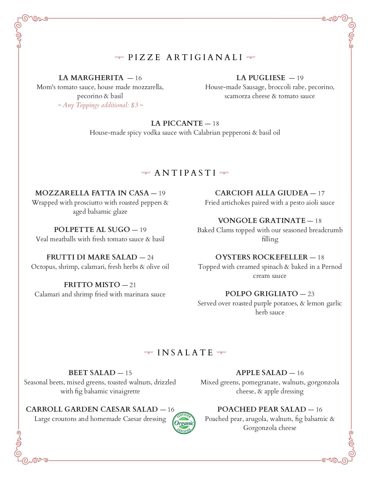 Dinner Menu